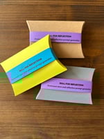 A zine and six-sided die in a cutie pillow box. I use a variety of different coloured boxes, belly bands, and dice so what you get in your order will be a delightful surprise!